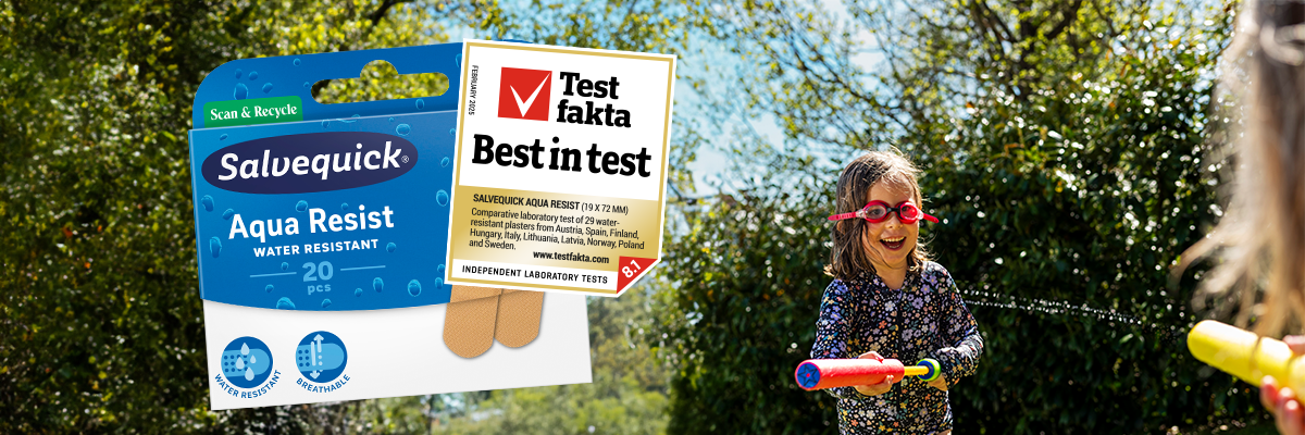 I vardagen är det de små sakerna som gör stor skillnad. Salvequick Aqua Resist är det perfekta vardagsplåstret för mindre sår. Och nu har det blivit utsett till Bäst i test bland vattenavvisande plåster i ett stort europeiskt laboratorietest utfört av Testfakta.